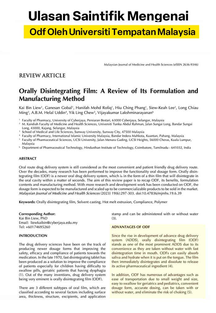 Oral Film (ODF) adalah kaedah perubatan terbaru. Bukan Shaja Sifatnya Yang Kecil & Mudah Disimpan Dalam Dompet, Malah Senang Larut dan Dos Lebih Tepat Untuk Elak Risiko dari Tercekik Pil/Tablet.