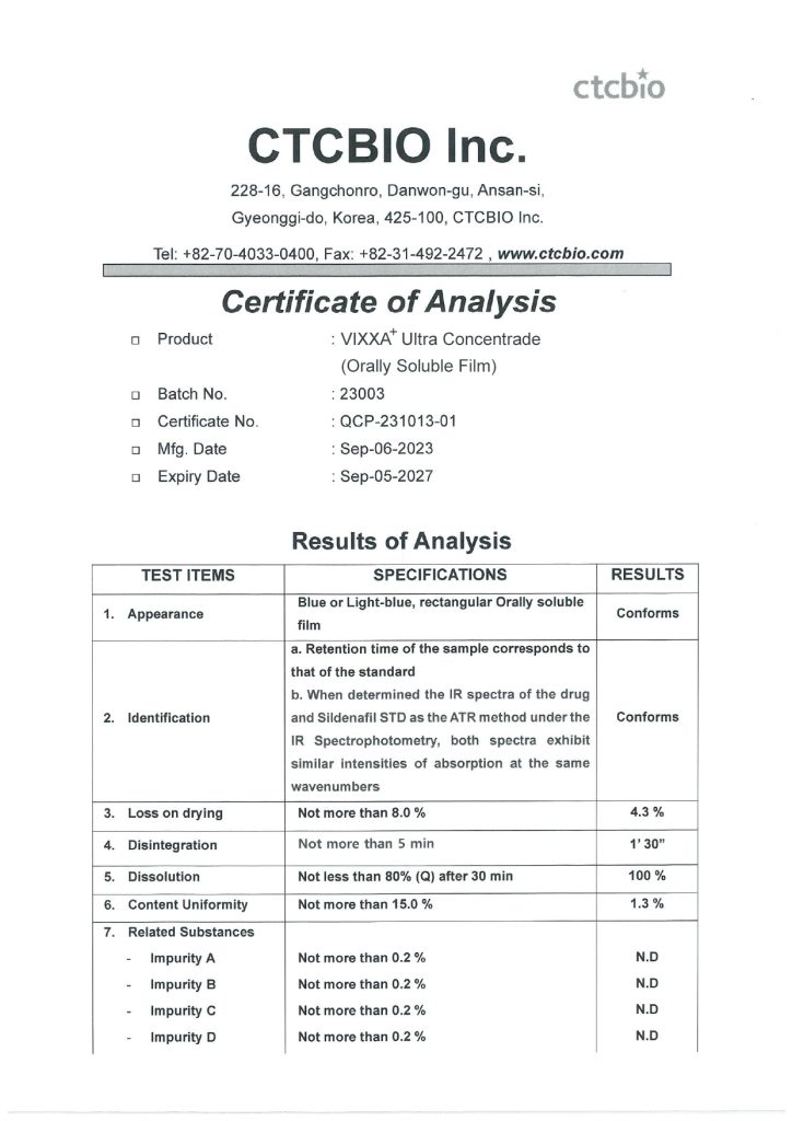 Vixxa Plus Ultra Concentrate® Data, Product, Shipping