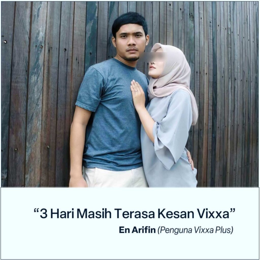 "Encik Aiffin sebelum ini alami kesukaran untuk keras lama, berkongsi pengalaman tak dapat nk dilupakan selepas 3 tahun ikhtiar, Vixxa Plus memang padu, 3hari pun masih terasa kesannya"