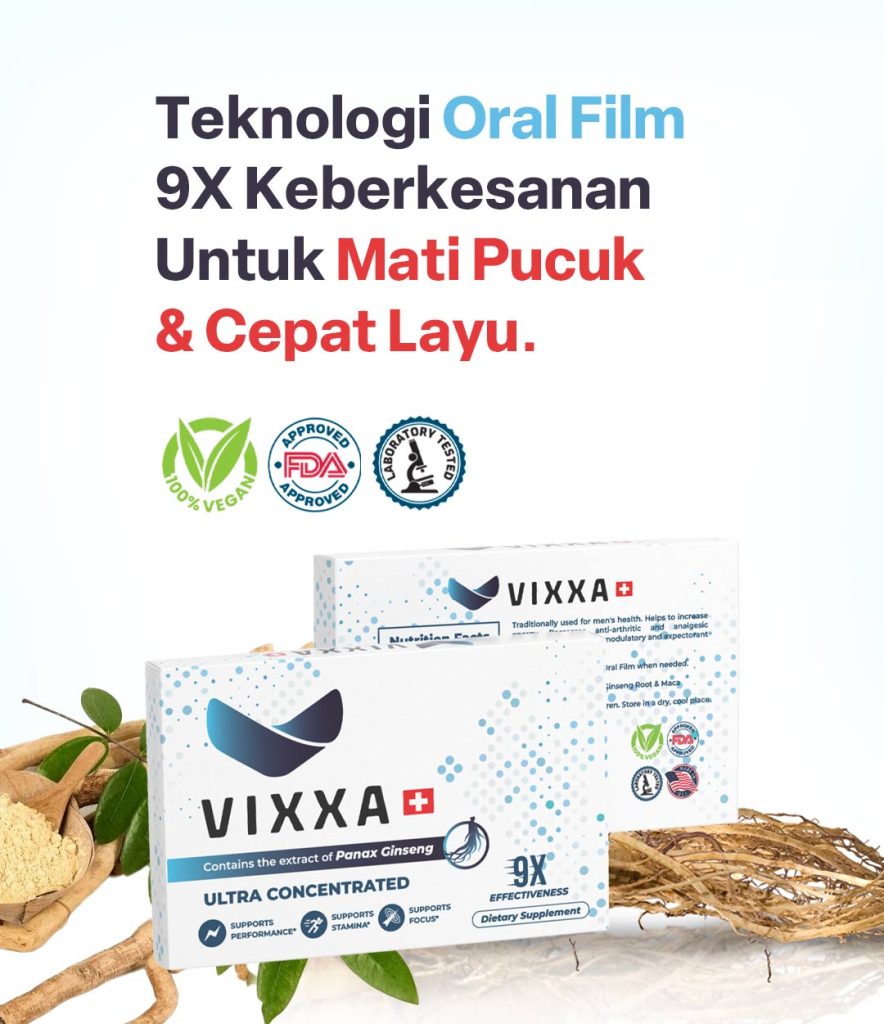 Vixxa Plus Setaraf pharmaceutical grade diekstrak dari Akar Maca, Akar Tongkat Ali & Korean Panax Ginseng diproses dalam bentuk 'Oral Disintegrating Film (ODF)' Menjamin 9X Kadar Serapan Nutrien Ke Darah Zakar Dalam Tempoh 20 Minit.